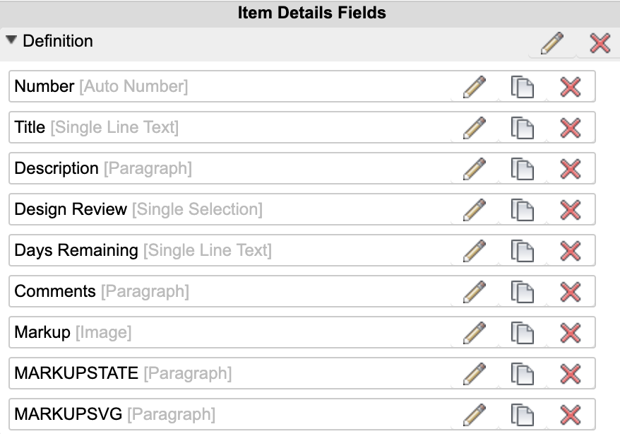 | fieldsIncluded | [] | Restrict the Details display to a defined list of fields (defined by field ID) |
