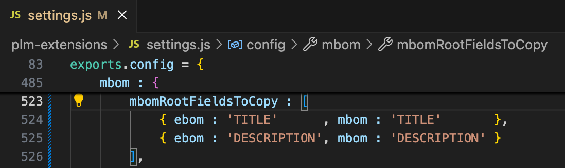| exports.common.workspaces.items.defaultBOMView | 'Tree Navigator' | The default BOM view to be used for the BOM display. If the defined view does not exist, the default BOM view will be used instead. For best performance, it is recommended to use a BOM view containing only the columns Descriptor, Number and Quantity. |