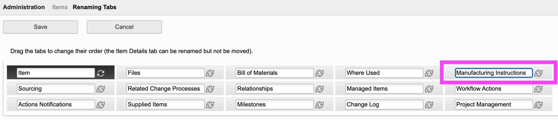 | suppressLinks | [] | When set to false, the details pages will not contain the links to open related PLM data |