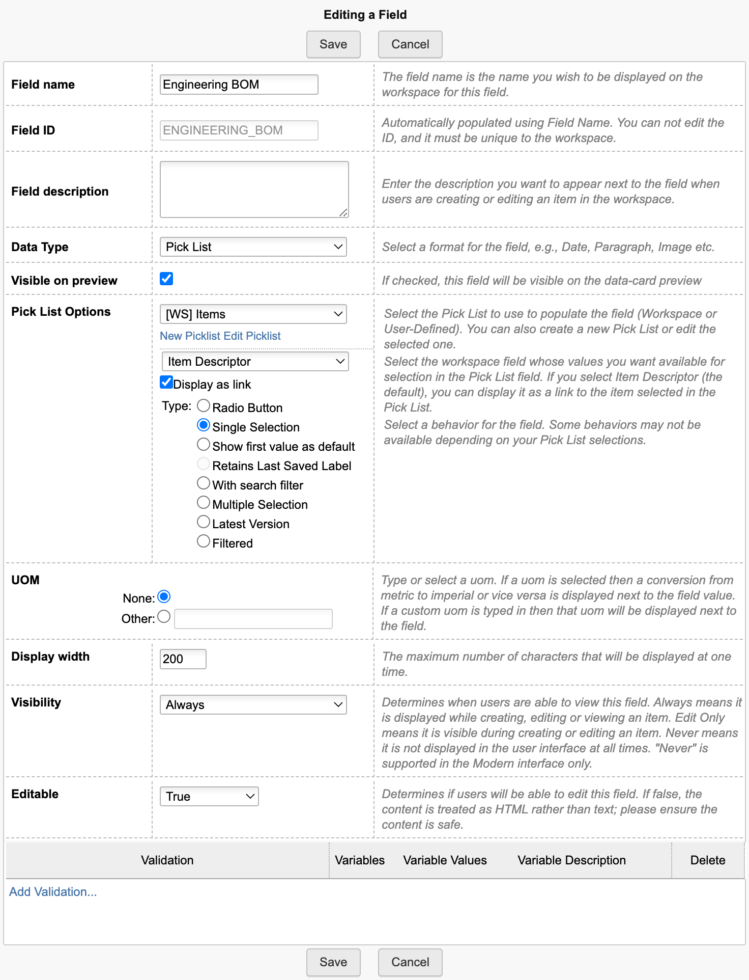 | Bugfix | Fields of type BOM UOM Pick List threw an error | |