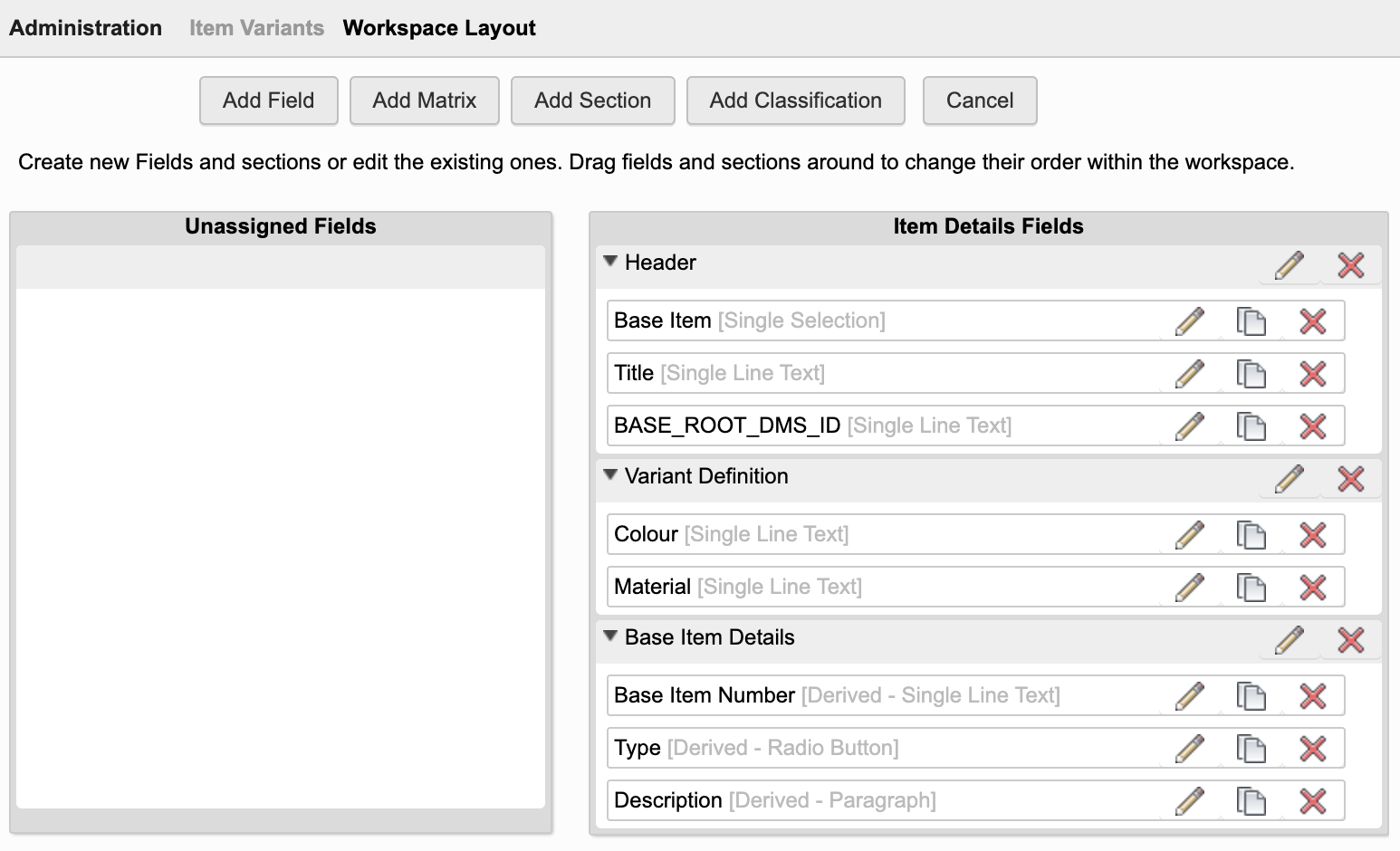 | sectionsOrder | ['Basic', 'Technical Details', 'PDM Data'] | Defines the order of the sections being shown, defined by an array with list of section names |